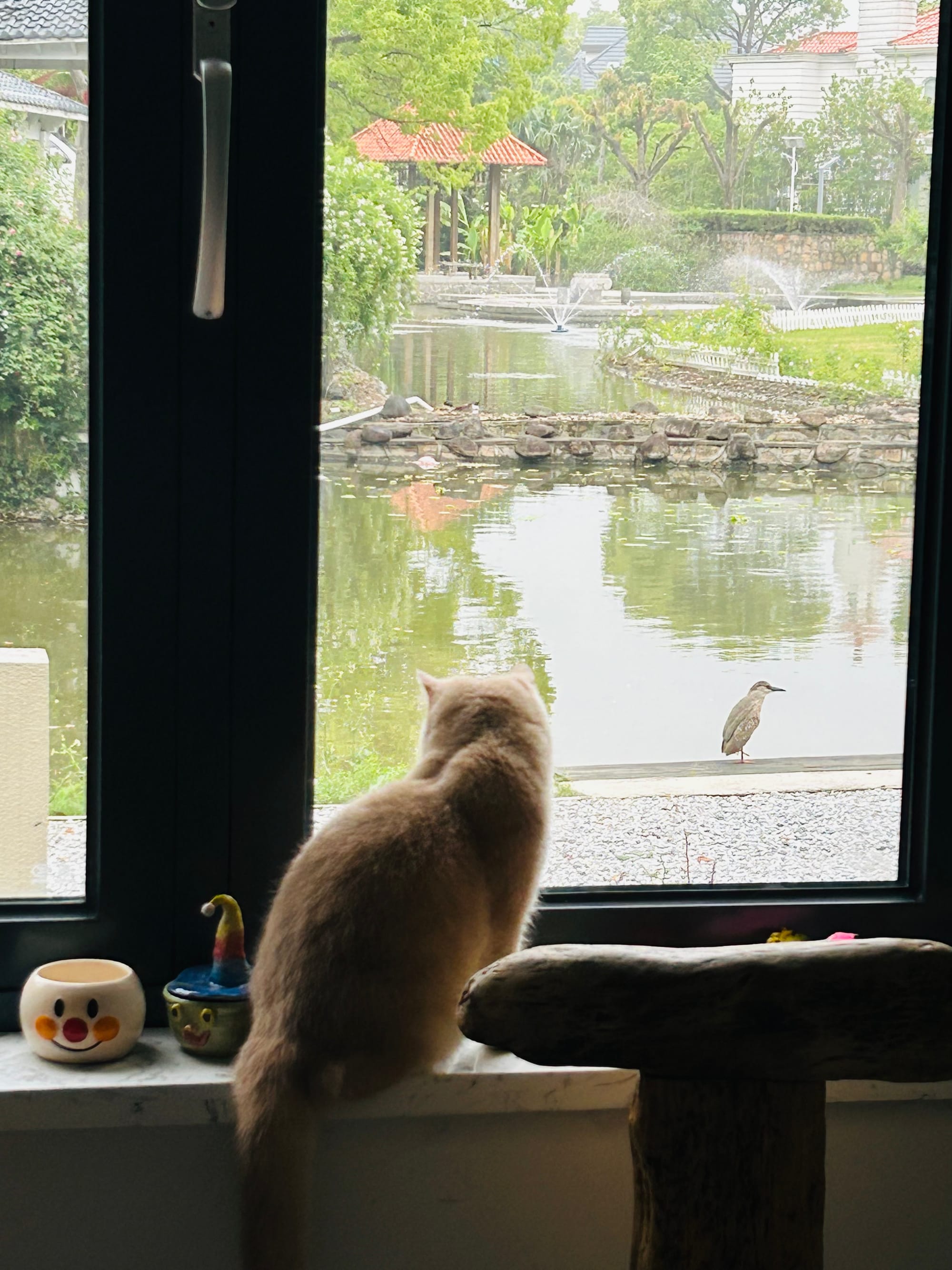 每天早上,我从睡梦蒸馏出来的清醒心境中,开始动笔。写的时候,我可以望见窗外,院子连着的一片小池塘,偶尔有白鹭在池边歇脚。一只黑毛杂黄毛,和一种黄毛而瘦小的流浪猫,会把我们的院子当作它们的自由土地穿梭而过,在积水的空花盆喝上几口。