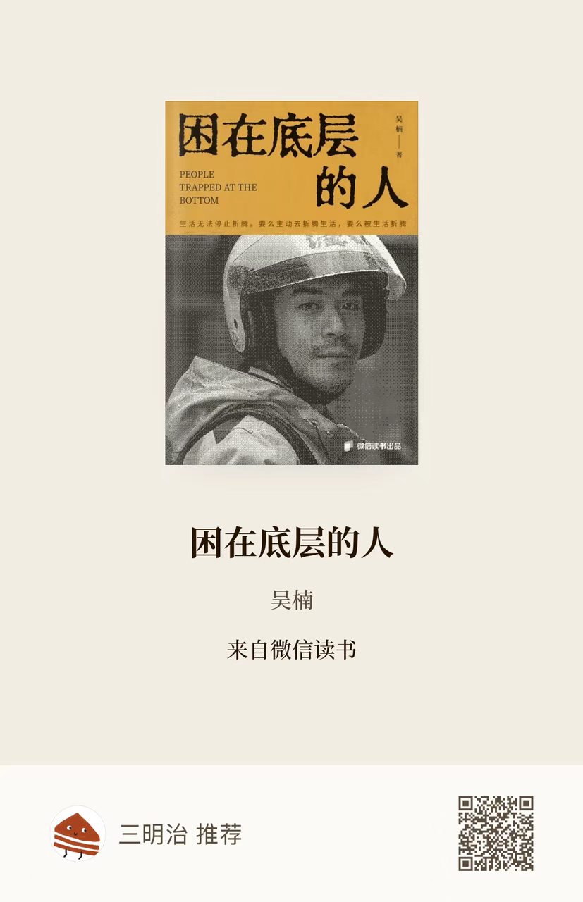 我们还和微信读书探索了新型的出版模式,直接出版电子书。三明治的长期专栏作者吴楠出版了《困在底层的人》,我为他的书写了一个小序。点击这里可以阅读他的自序和我的推荐。